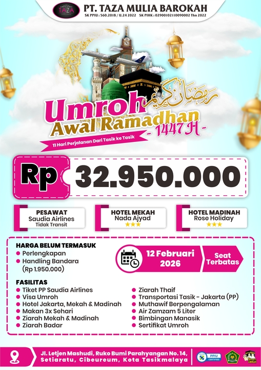Taza Tours sebagai perusahaan travel berizin resmi yang berkomitmen melayani perjalanan ibadah umroh, ziarah dan wisata, juga melayani pemesanan tiket pesawat, dan paket wisata Indonesia.